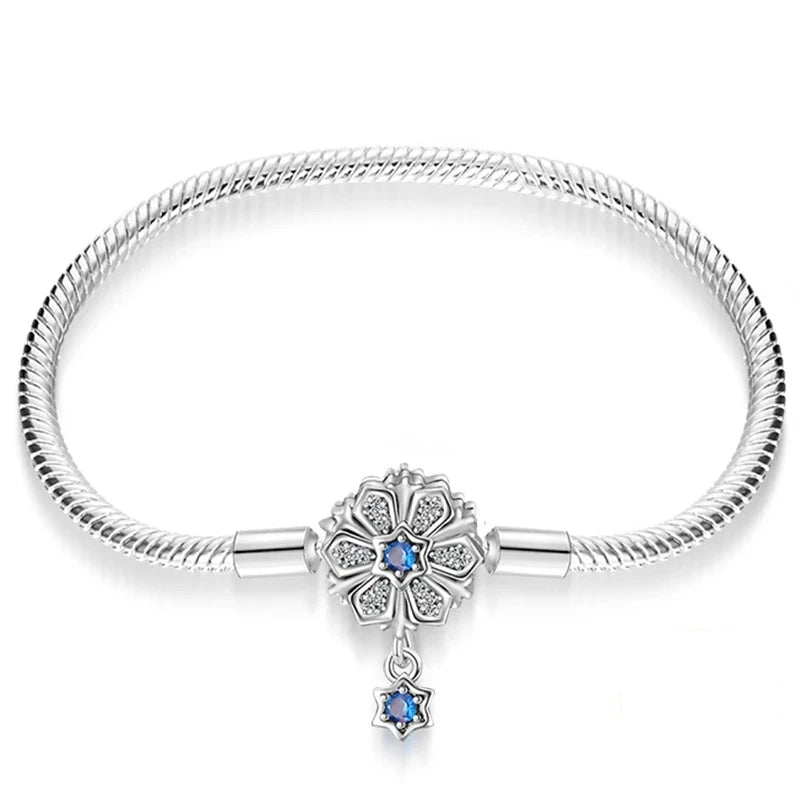 Brazalete con Flor y Colgante Azul en Plata