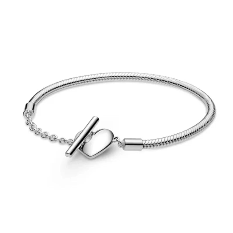 Brazalete de Plata con Broche de Corazón Plateado