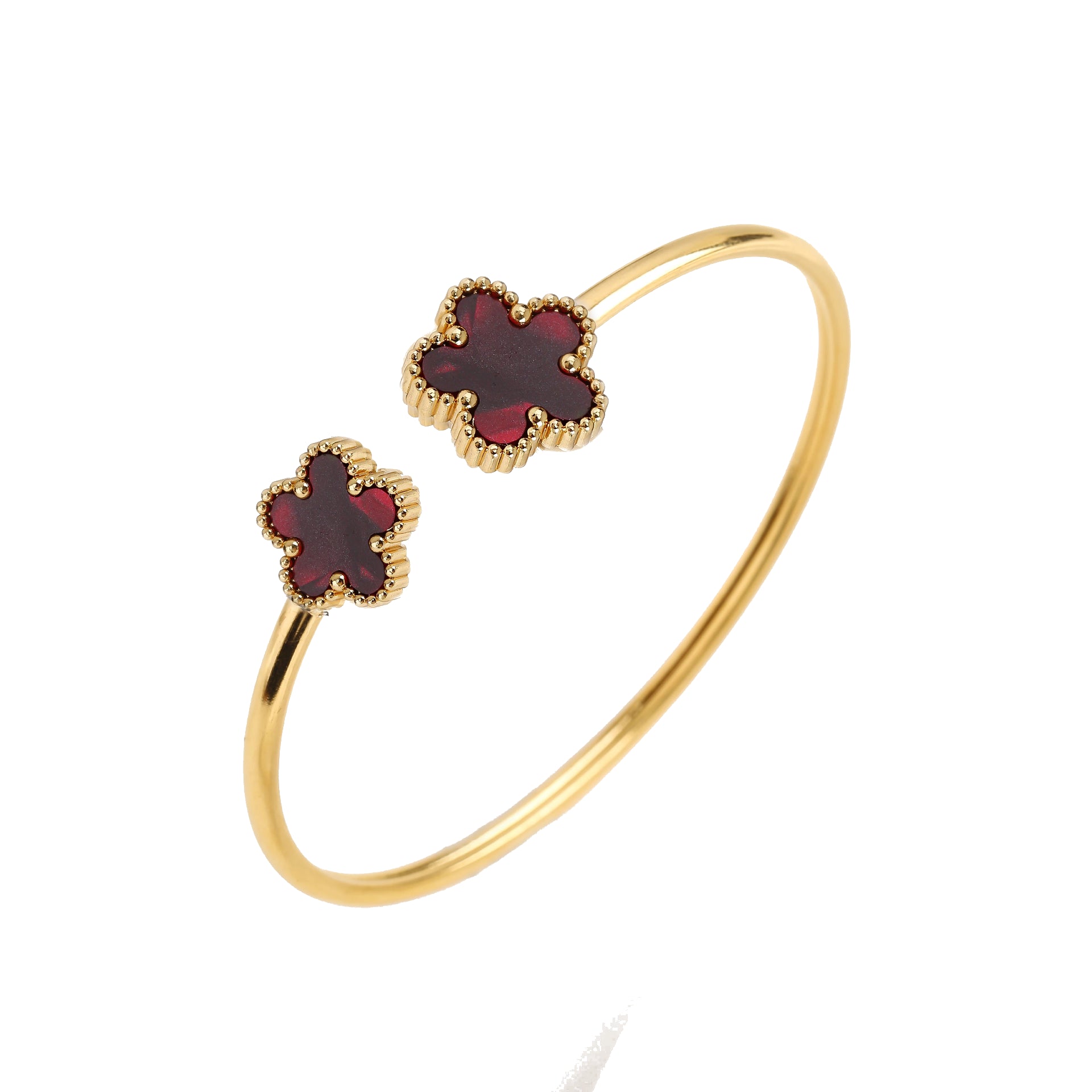 Brazalete Abierto con Detalle de Flor Burdeos en Oro