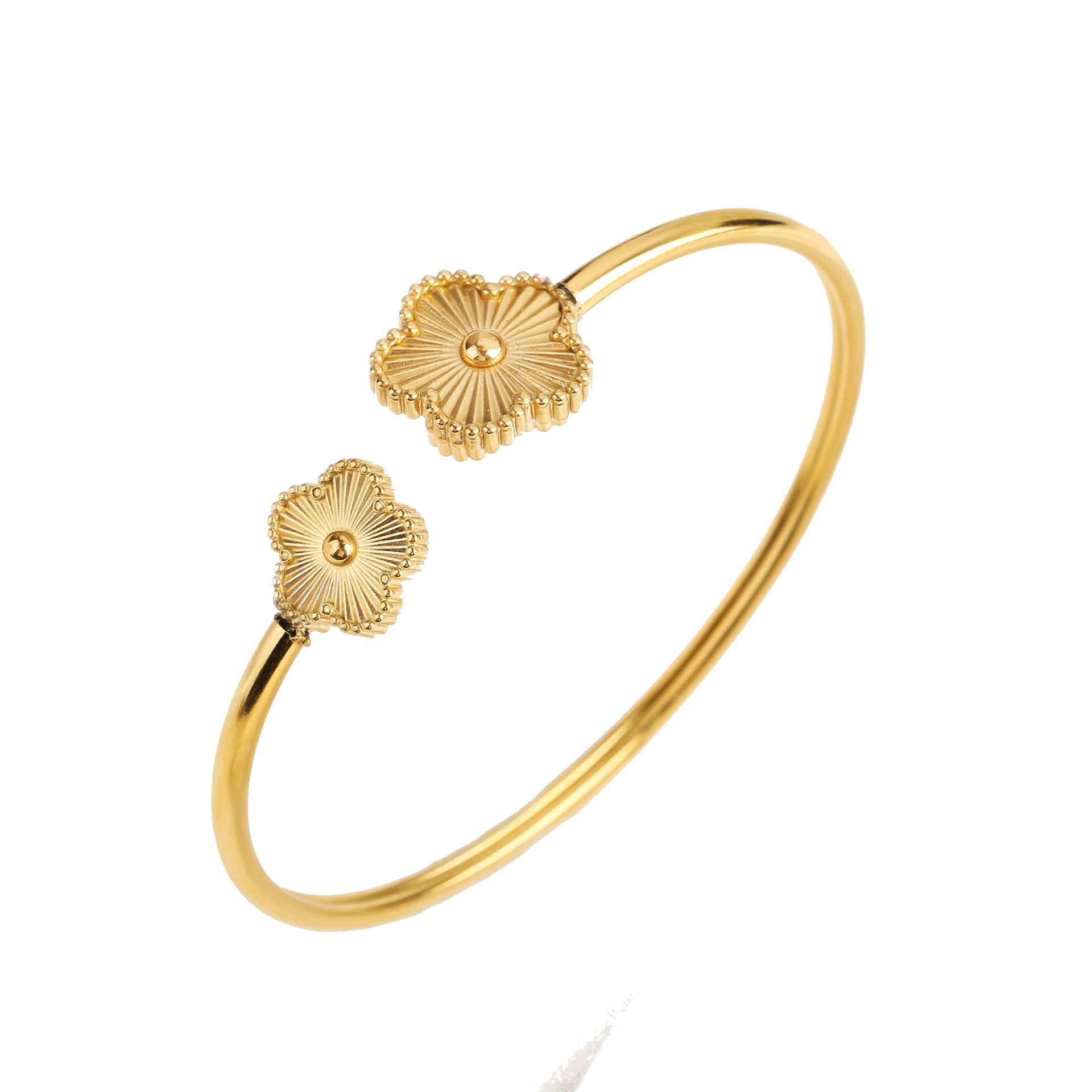 Brazalete Abierto con Detalle de Flor Solar en Oro