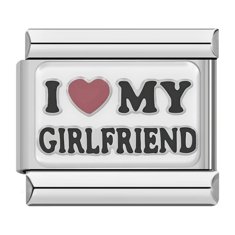 Este charm Italiano con el mensaje "I Love My Girlfriend" es un detalle especial para celebrar el amor y la conexión única. Hecho en Plata, su corazón rojo añade un toque romántico y personal. Es el complemento ideal para personalizar tu brazalete y expresar tus sentimientos. Perfecto para regalar o llevar contigo como símbolo de cariño.