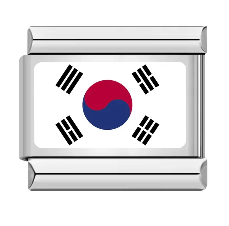 Este charm italiano con diseño de la bandera de Corea es una pieza elegante que encapsula la esencia cultural coreana. Fabricado con materiales de alta calidad, presenta el taegeuk (el círculo rojo y azul) y los cuatro trigramas negros sobre un fondo blanco, simbolizando el equilibrio y la armonía. Ideal para personalizar pulseras o collares, es perfecto para quienes desean llevar su orgullo coreano o celebrar su herencia en cualquier ocasión. Su diseño duradero y versátil lo hace adecuado para uso diario o como regalo significativo.