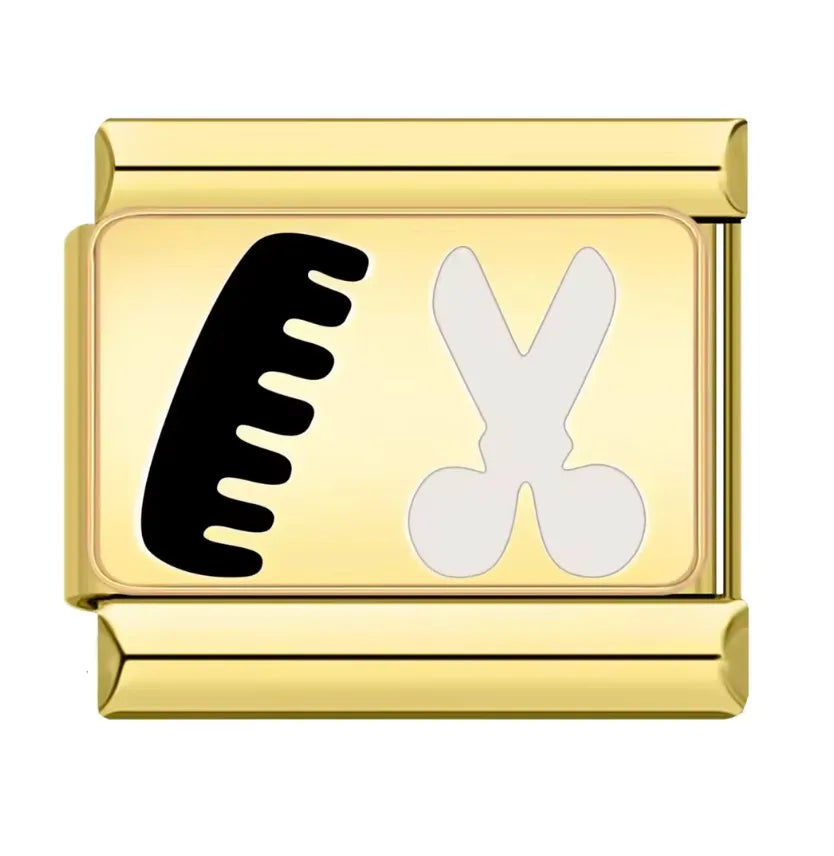 Charm Italiano Dorado con Diseño de Peine y Tijeras