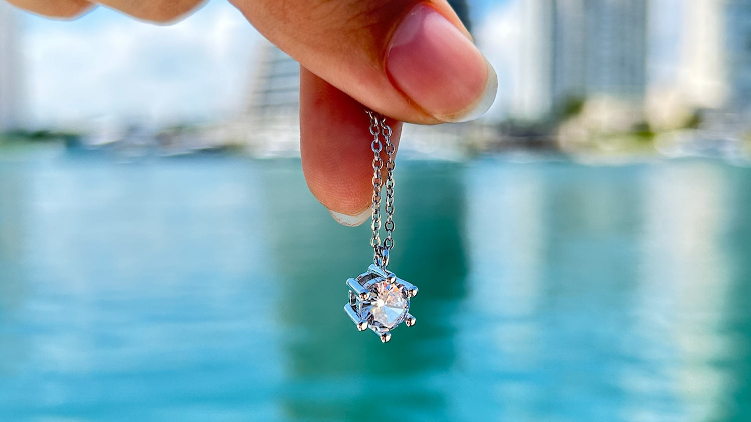 Collar de Zirconia o Moissanita Chapado en Oro Blanco