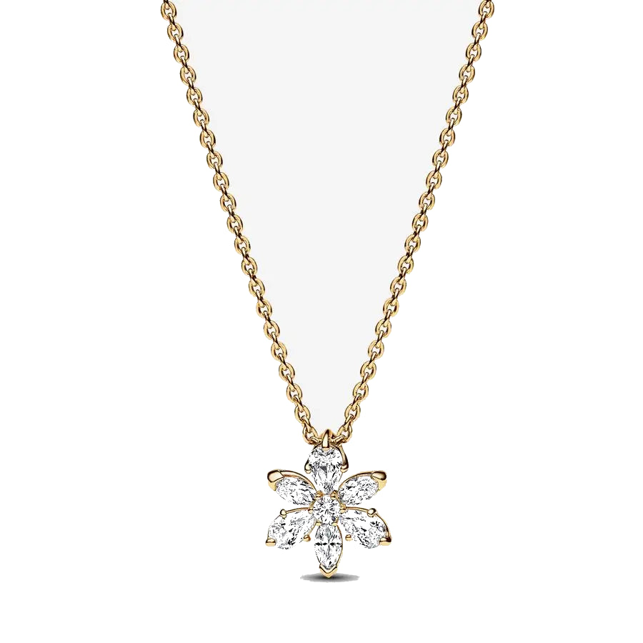 Este collar con una flor deslumbrante en oro es un detalle especial para celebrar la belleza y la naturaleza. Sus zirconias cúbicas en forma de pétalos brillan con elegancia, simbolizando crecimiento y alegría. Es el complemento ideal para un look fresco y versátil, perfecto para regalar o llevar contigo como un toque de vida en cada momento. Disponible con moissanita certificada GRA, que pasa el diamond tester, para un brillo aún más natural.